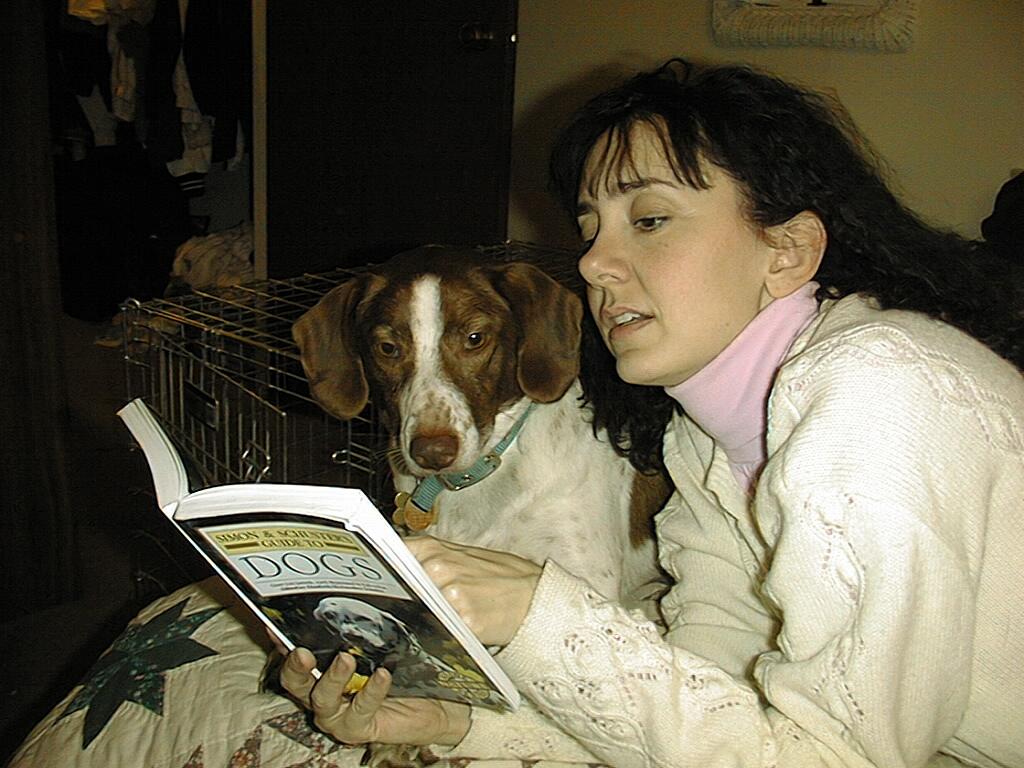 esta foto la vemos leyendo uno de sus libros favoritos con su mama adoptiva.