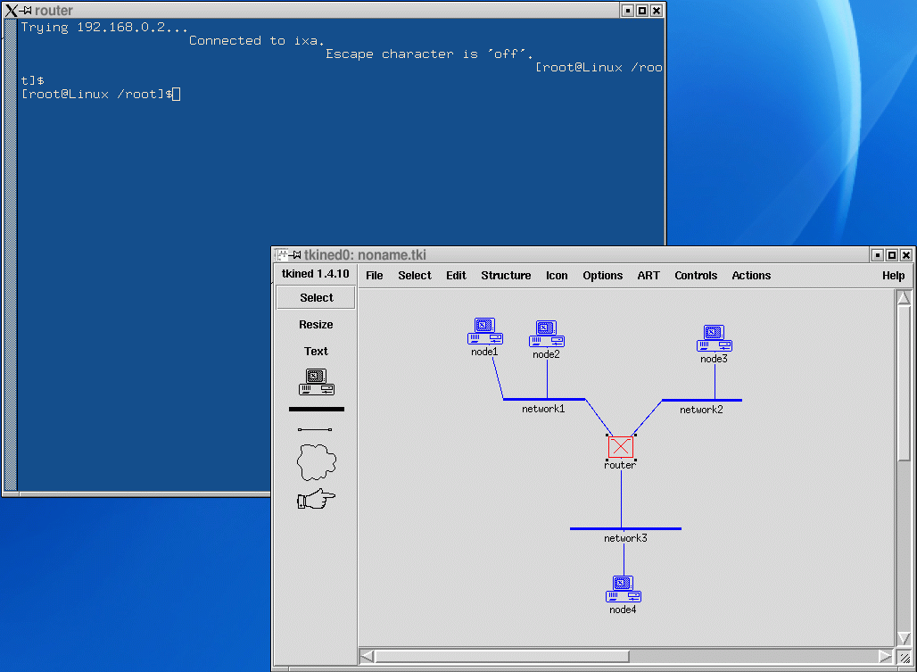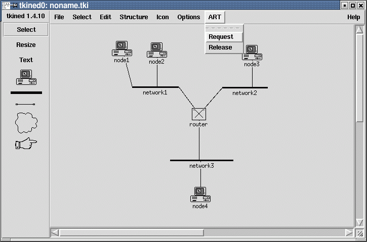 ART in action:![]() 1. User places a router ![]() 2. User creates three networks ![]() 3. User connects router to networks ![]() 4. User adds four hosts and connects them to networks ![]() 5. Now user is ready to request selected topology ![]() 6. The topology was successfully provided (now all its elements turned to blue) ![]() 7. User selects router and wishes to connect to it ![]() 8. Connection to router was successfully established (now it turned to red) ![]() 9. Now user wishes to get a router console... ![]() 10. ..and gets it! |