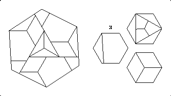 At the top of page 58, I state that the tessellation method doesn't work for five-into-one dissections of hexagons. I meant such tessellations as in Figure 6.15, and had not thought to check tessellation methods such as those in Figures 5.16 and 5.18. Anton Hanegraaf did, and improved on my 16-piece dissection of five hexagons to one in Figure 6.16 by one piece. He combined four hexagons into a large one, in six pieces, and split the fifth hexagon to form two triangles, in four pieces. The superposition of the tessellation of large hexagons similar to that in Figure 5.18 creates just five more pieces, giving a 15-piece dissection. Using the scheme as in Figure 5.16 seems to do no better than 16 pieces. Consonant with one theme in chapter 6, Anton has neatly harvested the fruit of civilizations past.