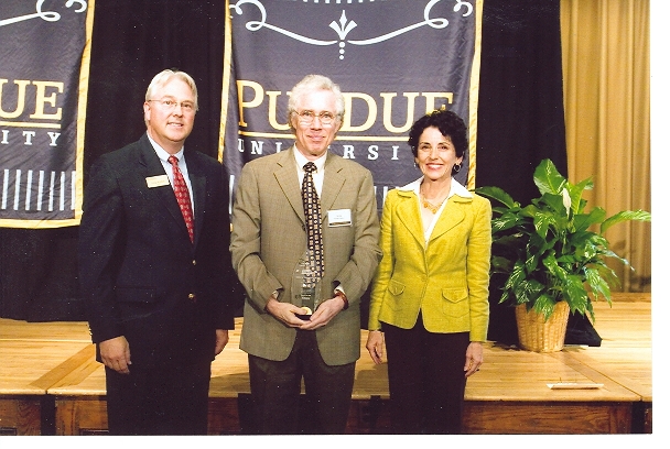 Provost Randy Woodson, inductee Greg Frederickson, President France Córdova.