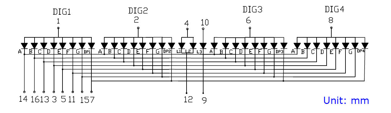 alphabetic characters) that is made of 7 LEDS in the following way: