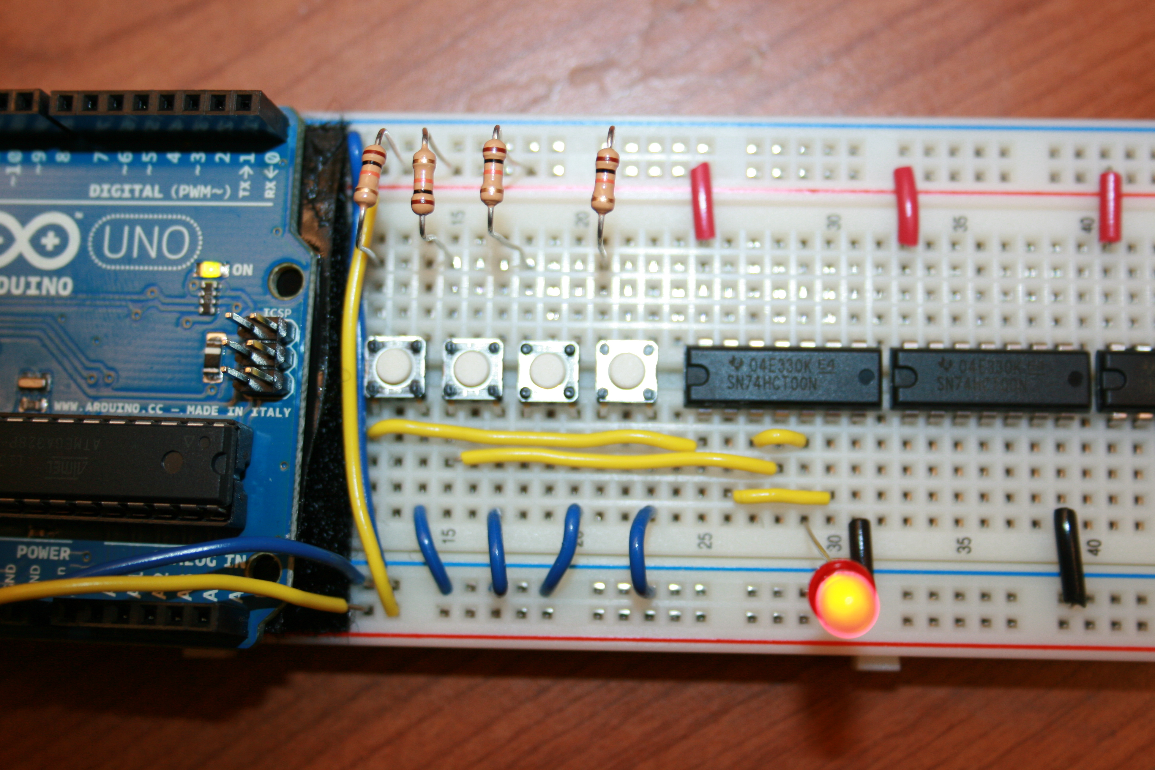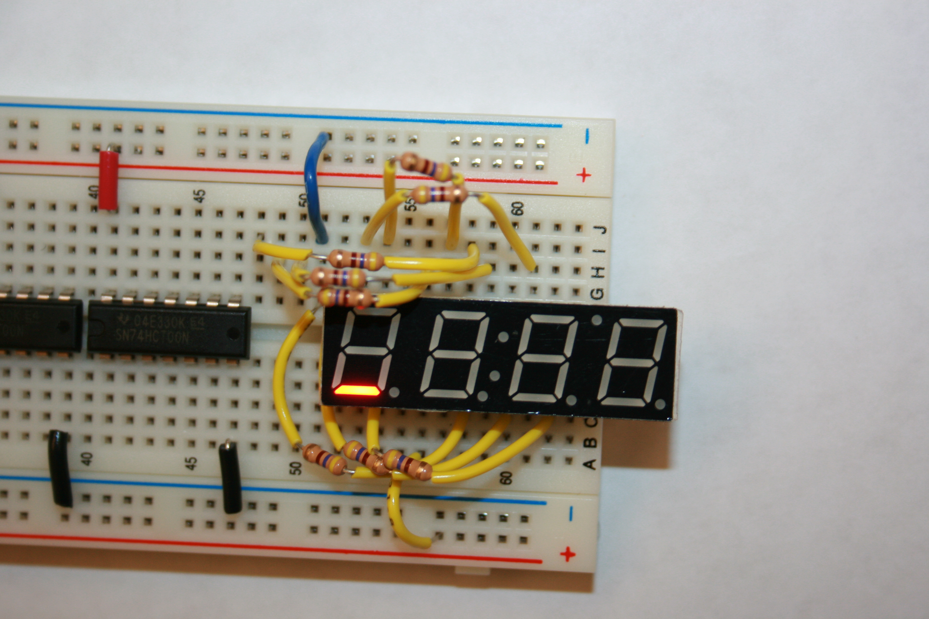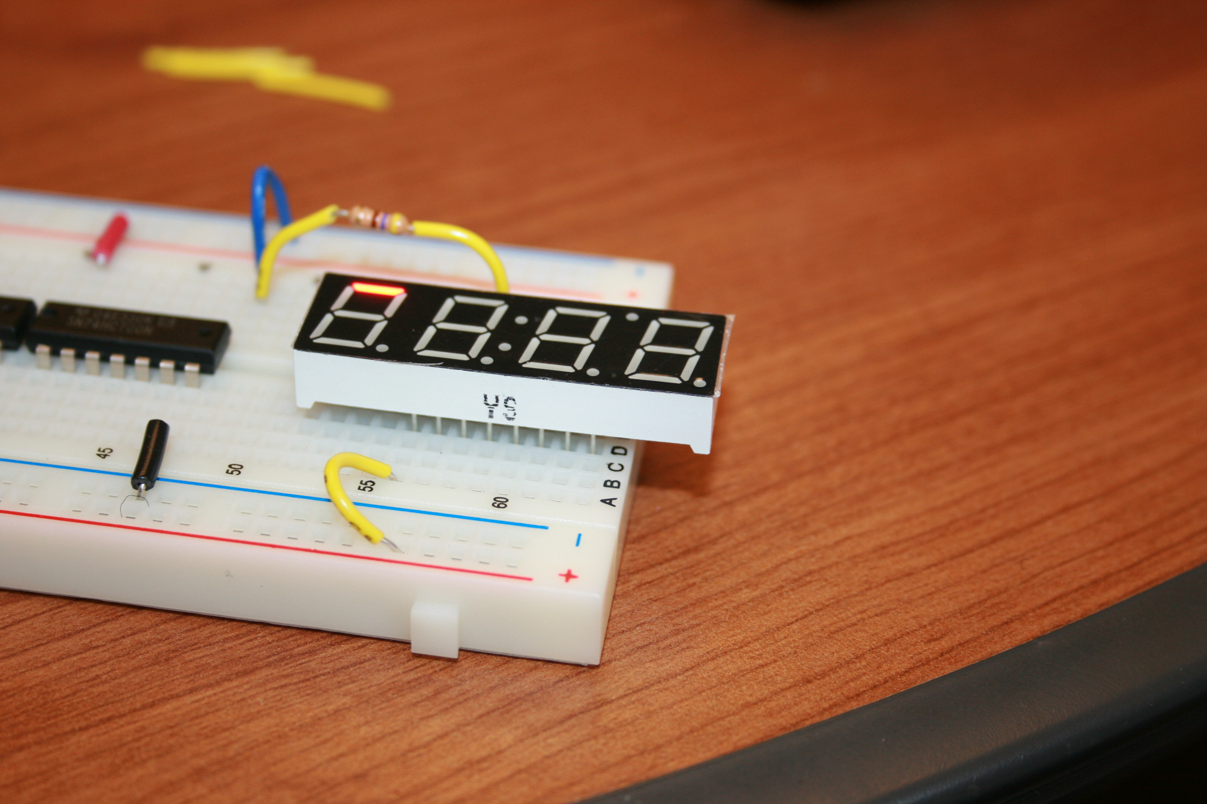 - Your protoboard implementing the flip-flop 0 and the 7-segment