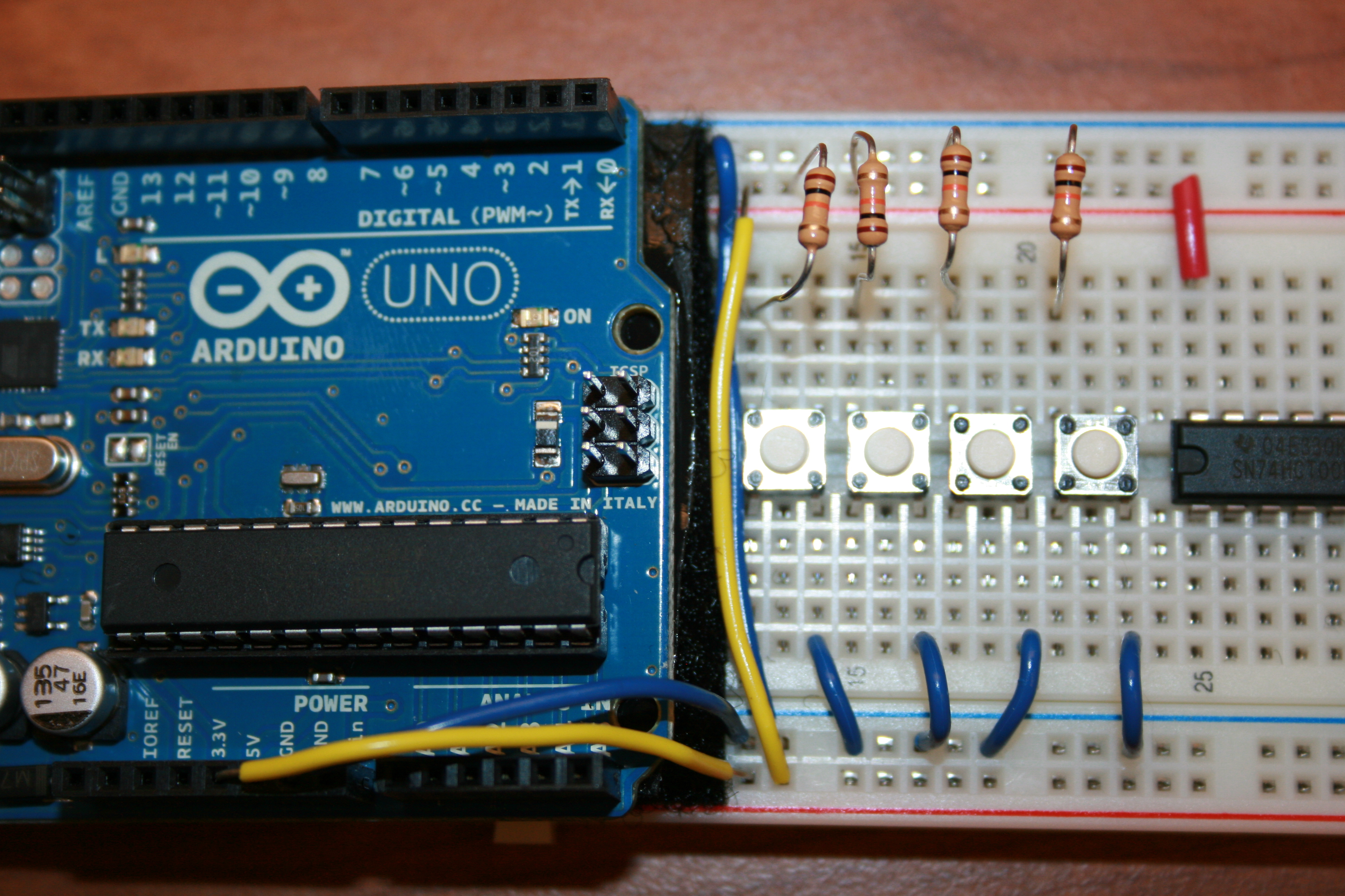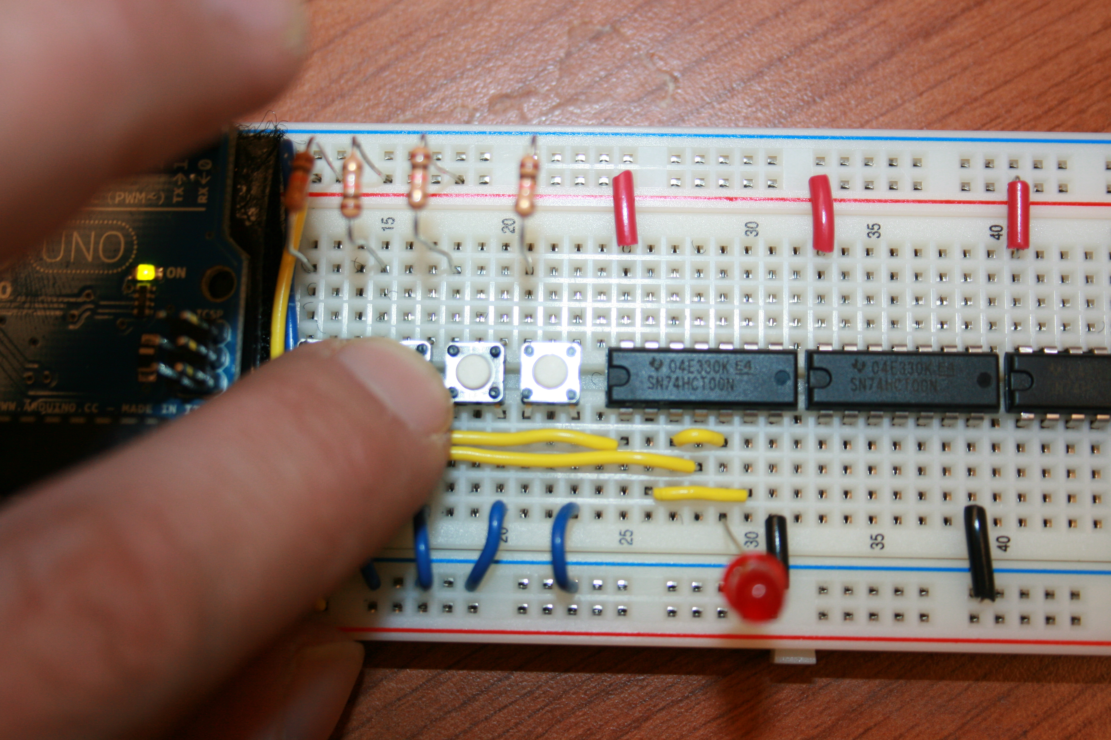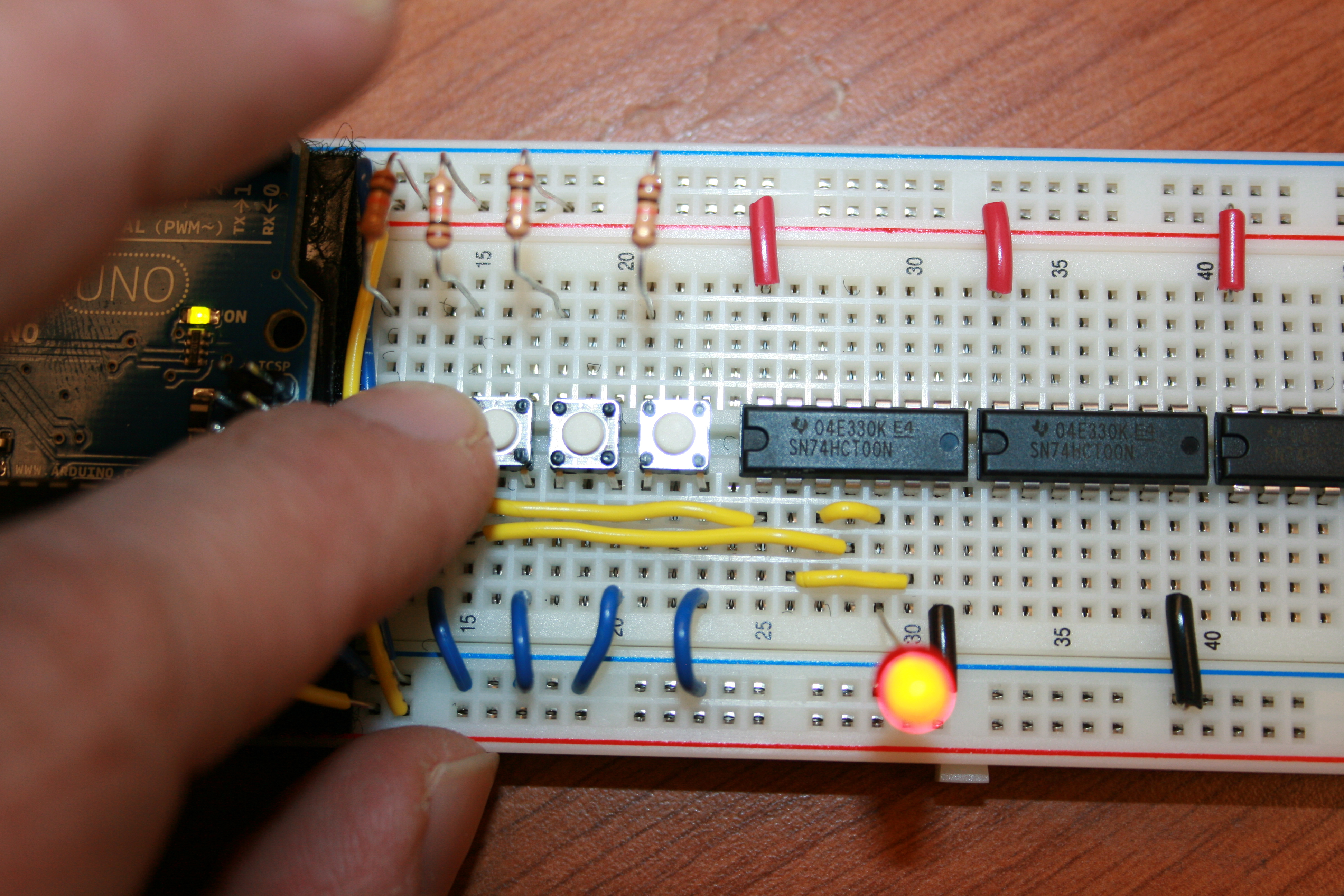 - Your protoboard implementing the flip-flop 0 and the 7-segment