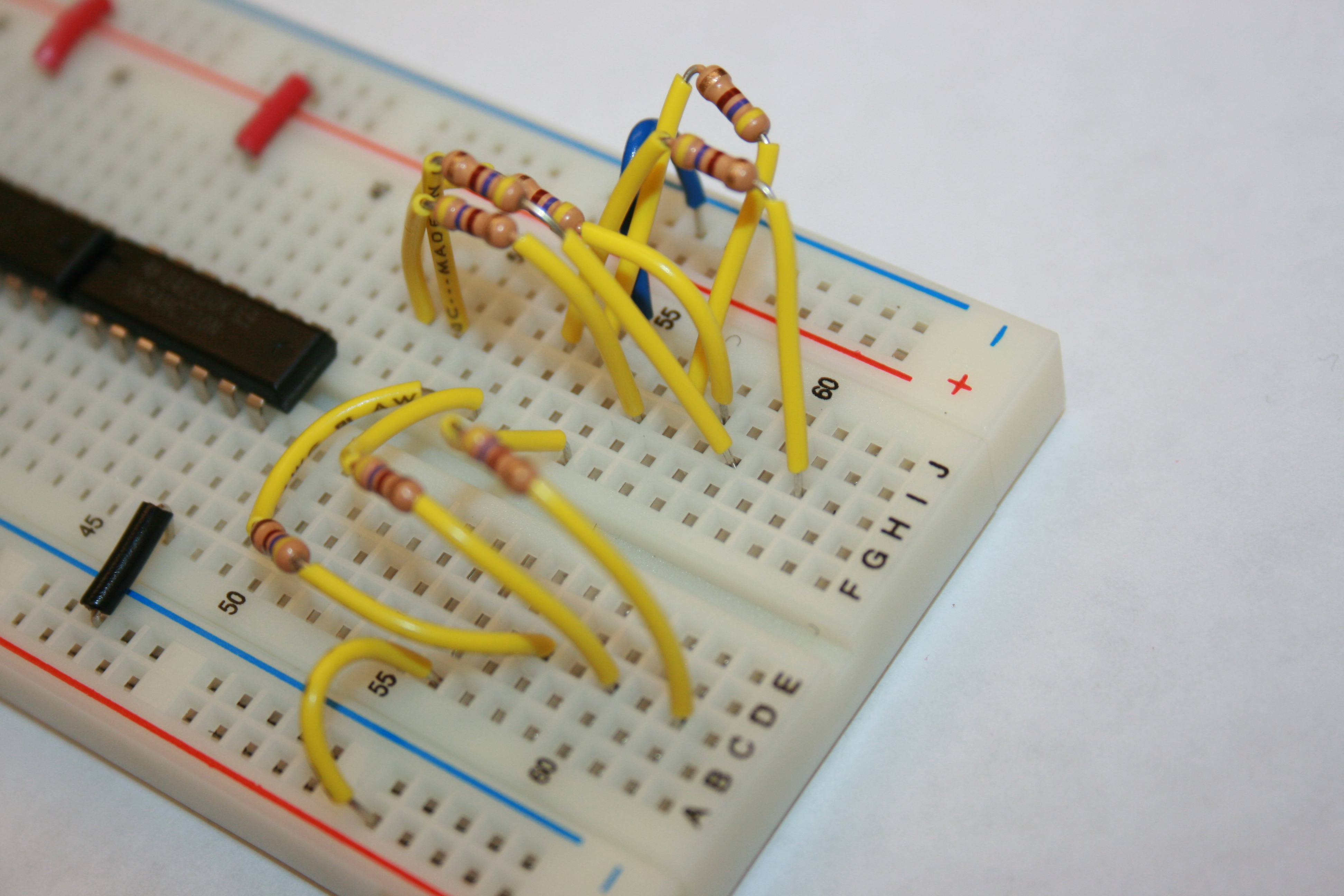 the terminals of the resistor while leaving out abut 1/4 of an inch.