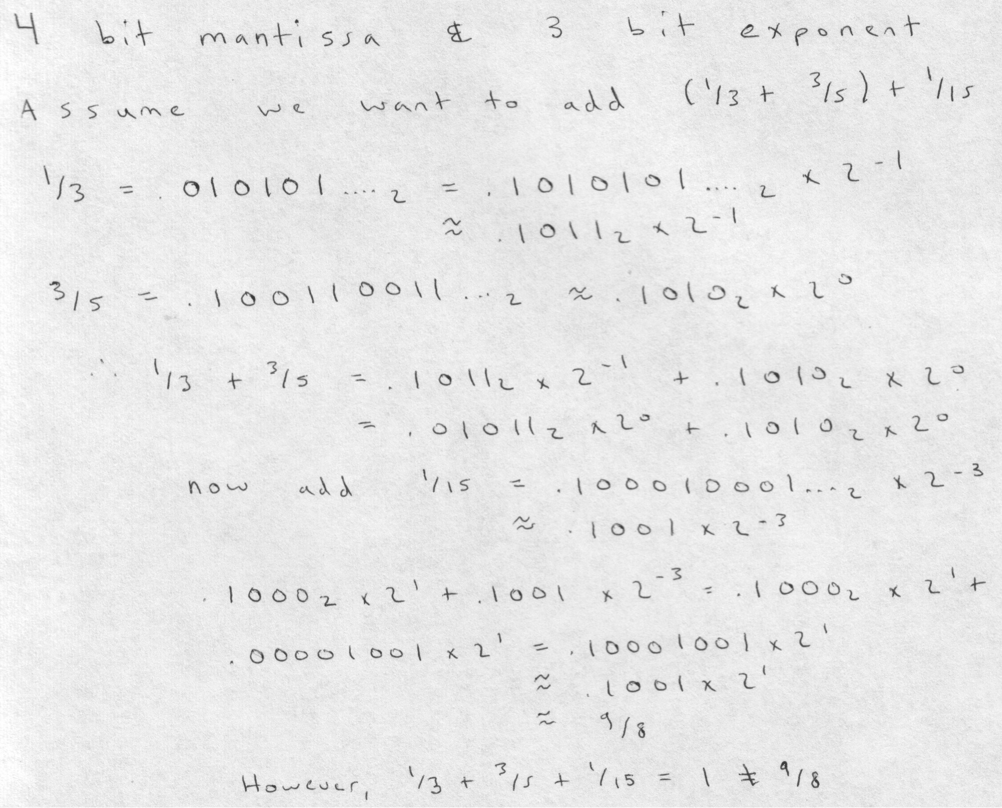 - 1/3 = (1/2 x 0) + (1/4 x 1) + (1/8 x 0) + ... = .01010101....2