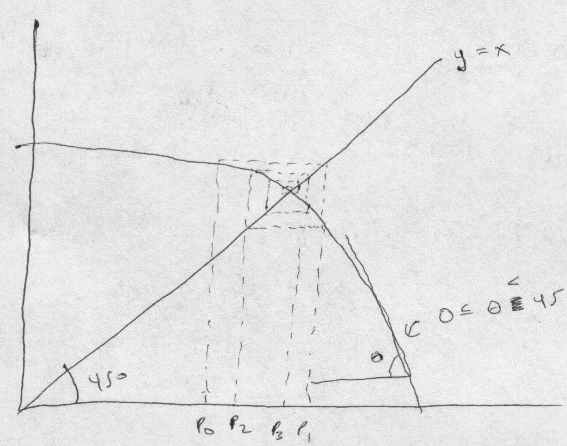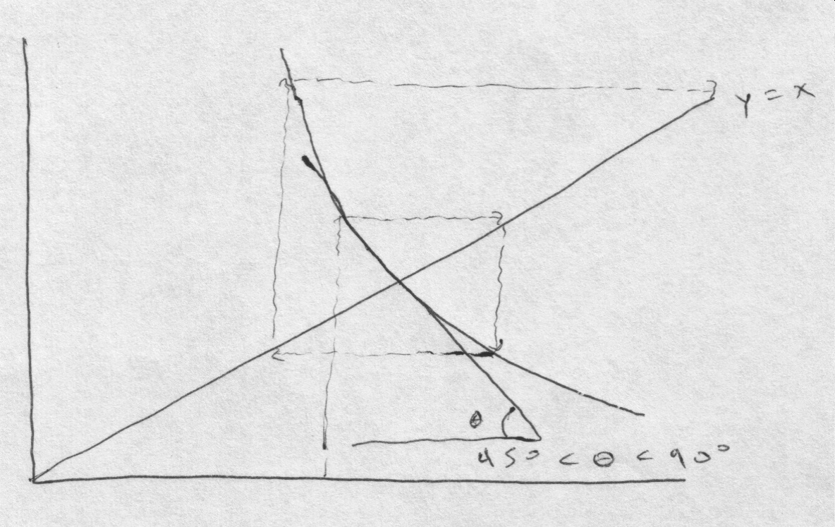 - monotone convergence: 0 < g'(P) < 1