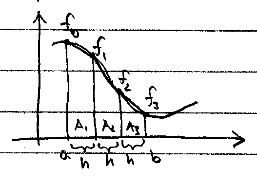 In general: ∫a→b ƒ(x)dx = h[ (ƒ(a)+ƒ(b))/2 + ∑k=1→M-1ƒ(xk) ] for M+1 points x0...xM