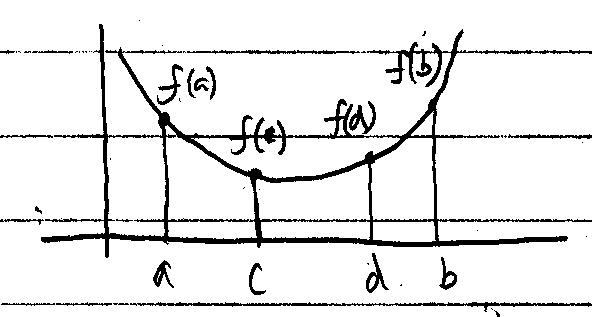 if ƒ(c) > ƒ(d) then the minimum is in the right side of c