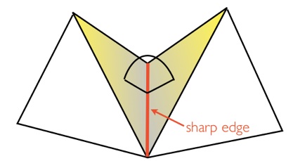 Similarly, additional points are needed if neighboring triangles form a sharp angle along their common edge. See below.