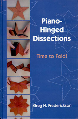Prof. Greg Frederickson's third book Piano-Hinged Dissections: Time to Fold! was recently released by A.K. Peters. In this book Prof. Frederickson introduces the surprising new concept of piano-hinged geometric dissection. The book is an outline of methods for creating this type of handiwork and it describes over 150 challenges in folding, using line drawings and 3D perspectives. Prof. Frederickson says piano-hinged dissections, "are challenging to discover and difficult to illustrate. Yet, paradoxically, you need relatively little background to understand and enjoy them," making this a book for anyone with experience in high school geometry.