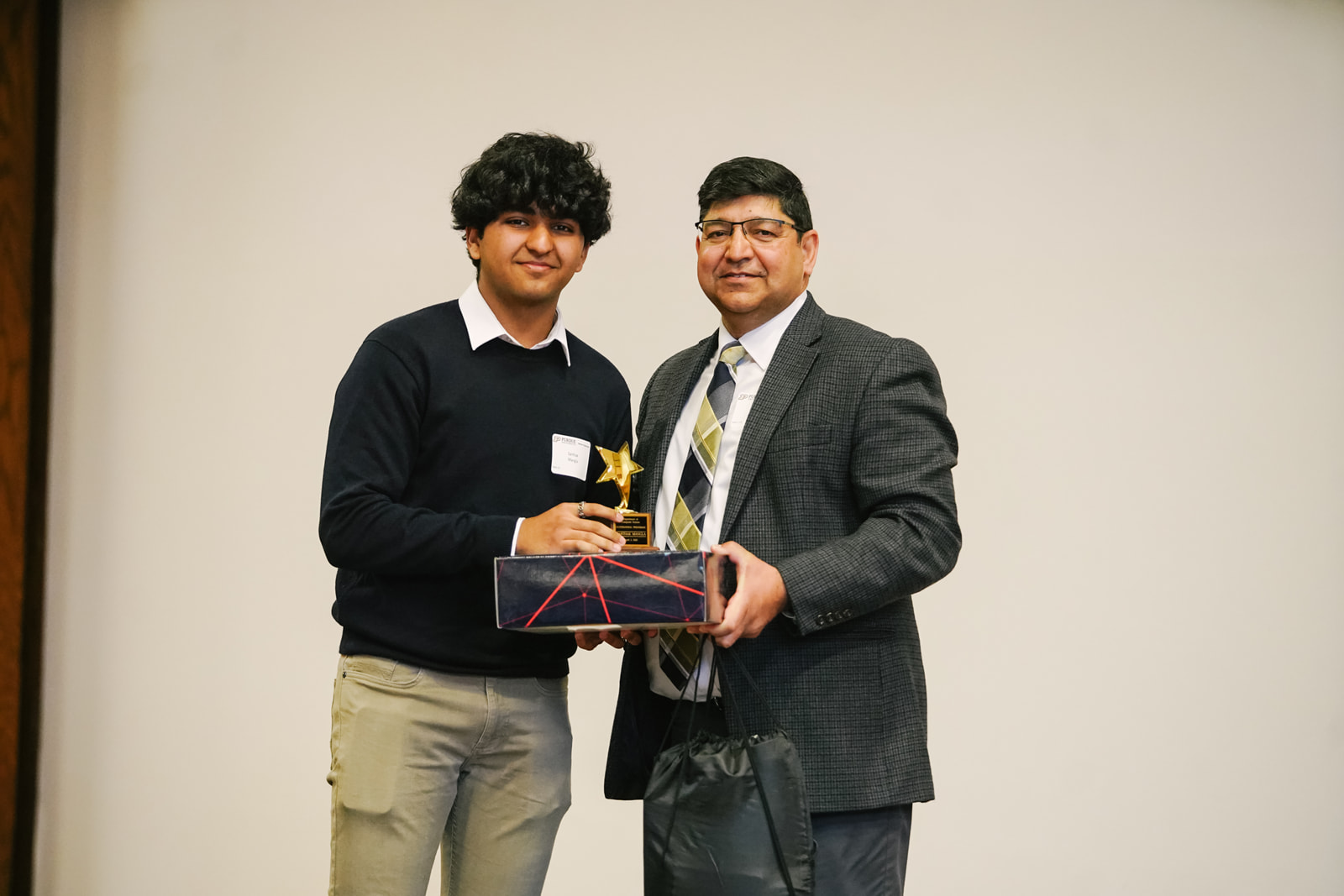 Arslan Khan, president of the Graduate Student Association present awards that were selected by graduate students. For the Most Influential Professor Award, Professors Kent Quanrud and Xiangyu Zhang were selected.