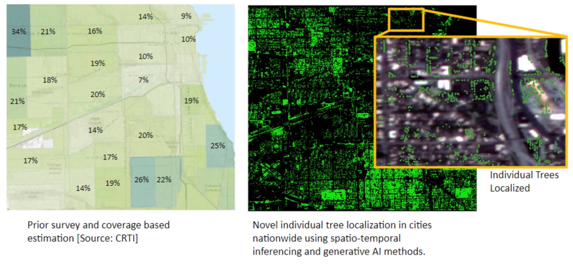 The team, together with CS faculty Benes and Yeh and with researchers from the Purdue Institute for Digital Forestry of which Aliaga is a member, used the RCAC GPUs to detect trees in target cities. This resulted in precise localization of 273 million public and private trees throughout 8.2 million acres of urban space. The first-of-its-kind, the dataset computed via automation instead of traditional survey and extrapolation methods.